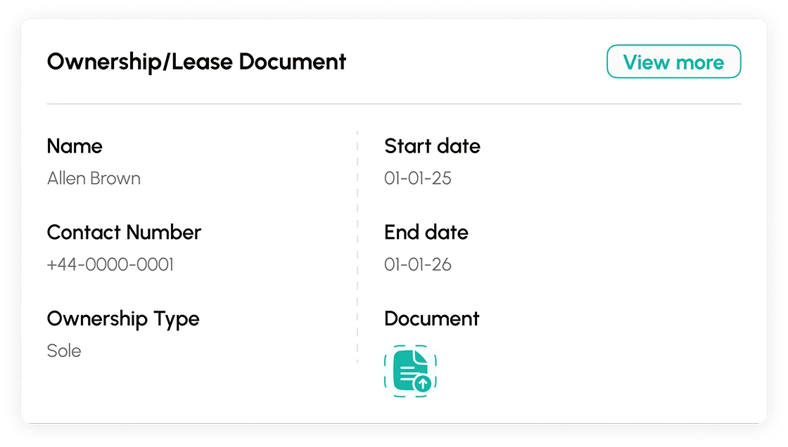 From location and floor plans to certificates, agreements, and audit history—your entire property profile is organised in one central hub, fully linked to compliance alerts.